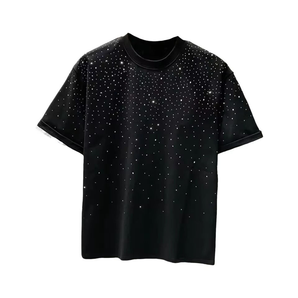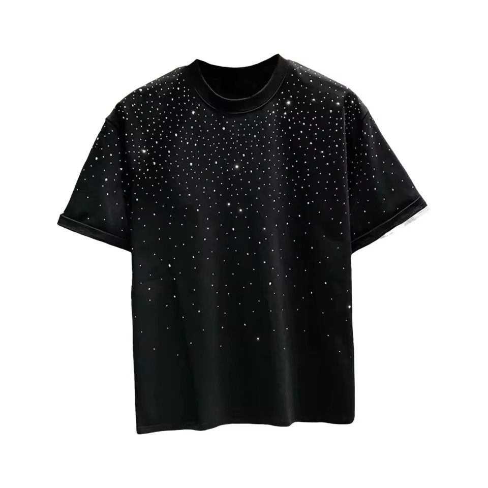 Camisetas de Hombre con Pedrería, Logotipo Personalizado, Transpirables, 100% Algodón Jersey, Manga Corta, Estilo Rock, Venta al Por Mayor
