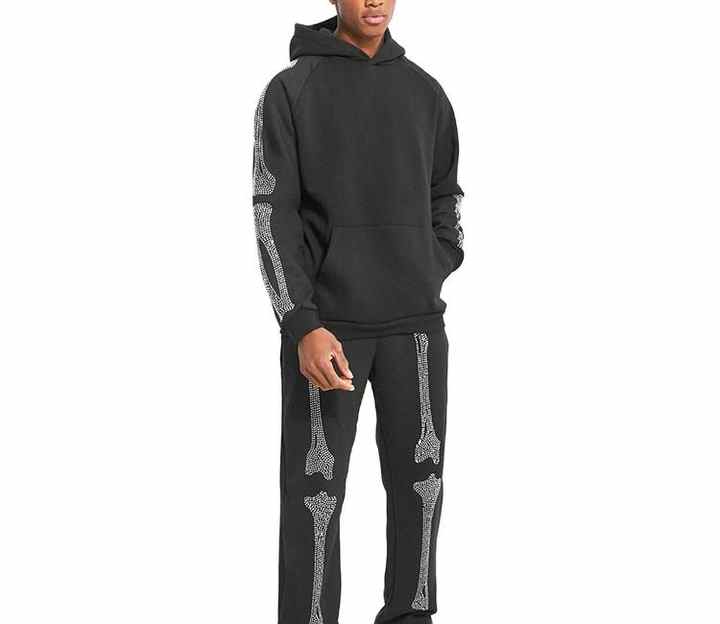 Chándal de Invierno para Hombre con Capucha y Pedrería, Transpirable, Cómodo, Antiarrugas, 100% Algodón con Forro Polar, Gran Venta, Tendencia