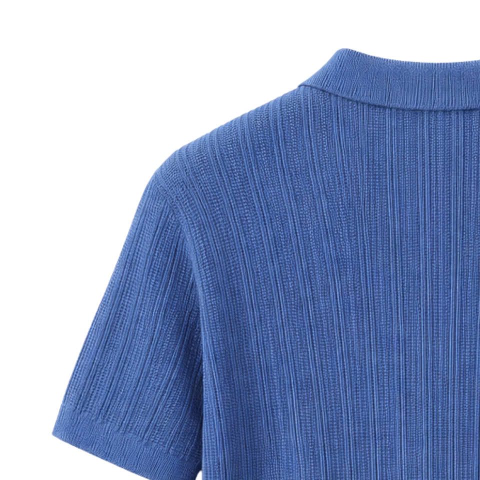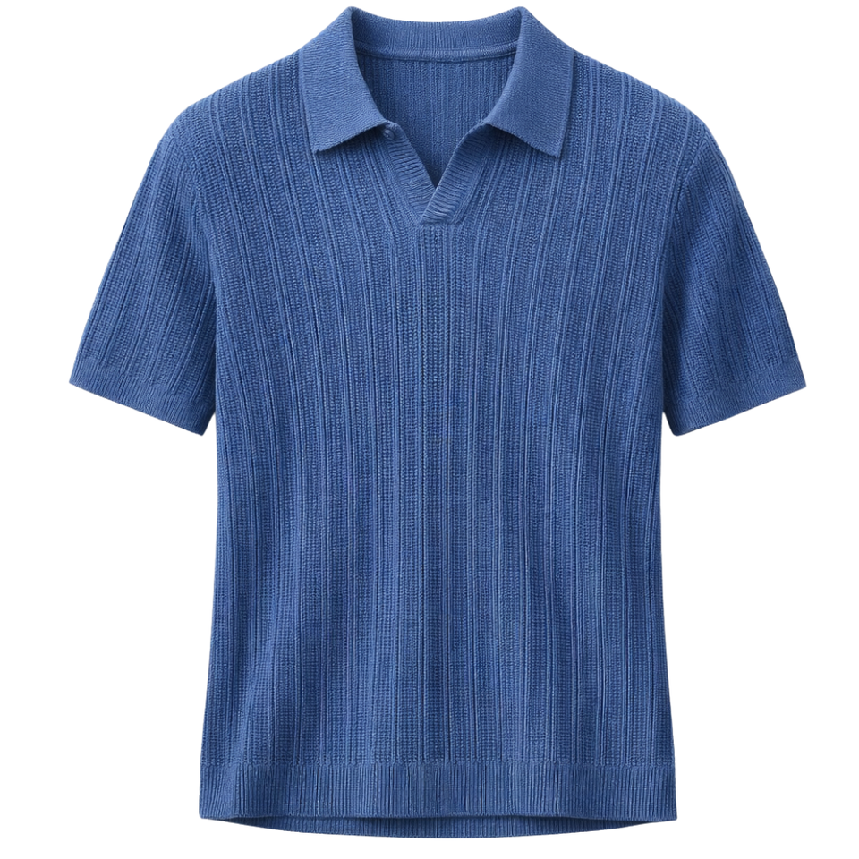 Polo de Punto Acanalado para Hombre, Manga Corta, Algodón Premium, Transpirable, Corte Ajustado, Casual, Moda de Verano, Venta al Por Mayor
