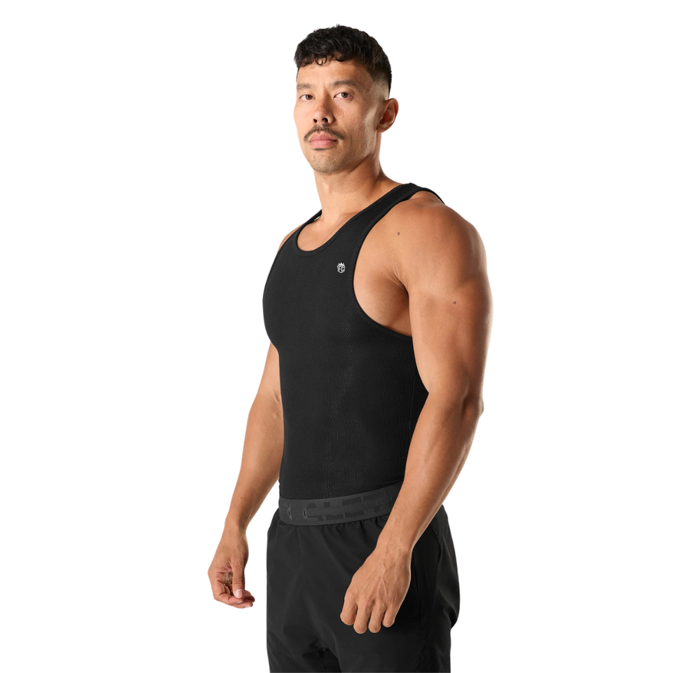 Camiseta sin mangas acanalada para hombre, ajuste muscular, chaleco de entrenamiento para gimnasio, capa base elástica para entrenamiento atlético, ropa deportiva negra