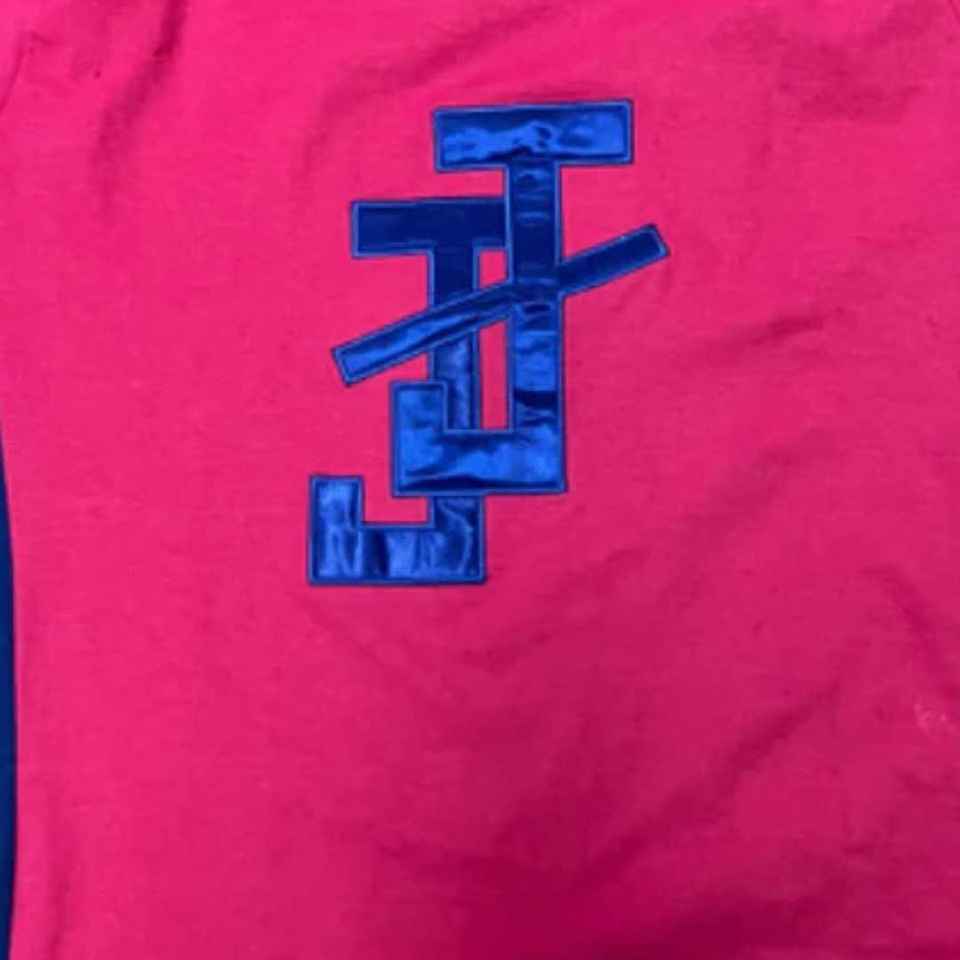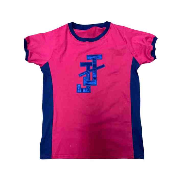 Camiseta Ringer Azul Rey y Rosa para Hombre, Cuello Redondo con Panel en Contraste, Logotipo Bordado Personalizado, Algodón, Ropa Urbana, OEM, Venta al Por Mayor
