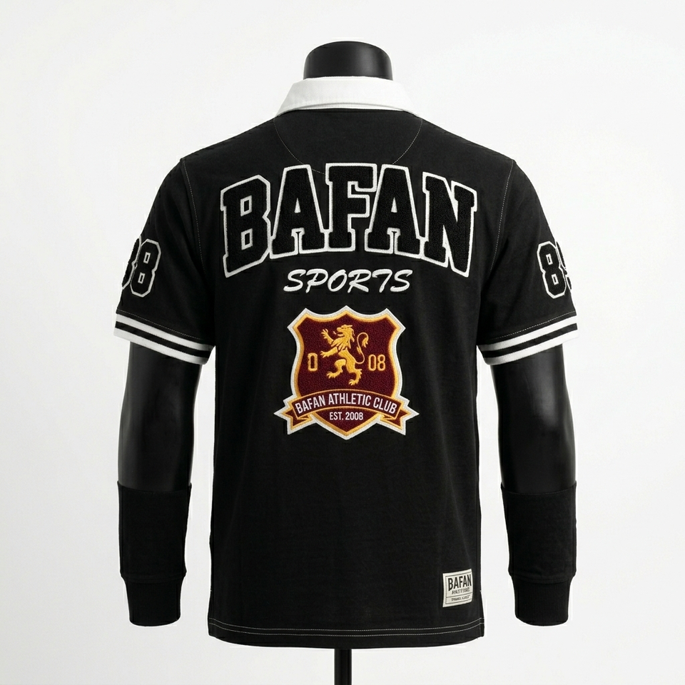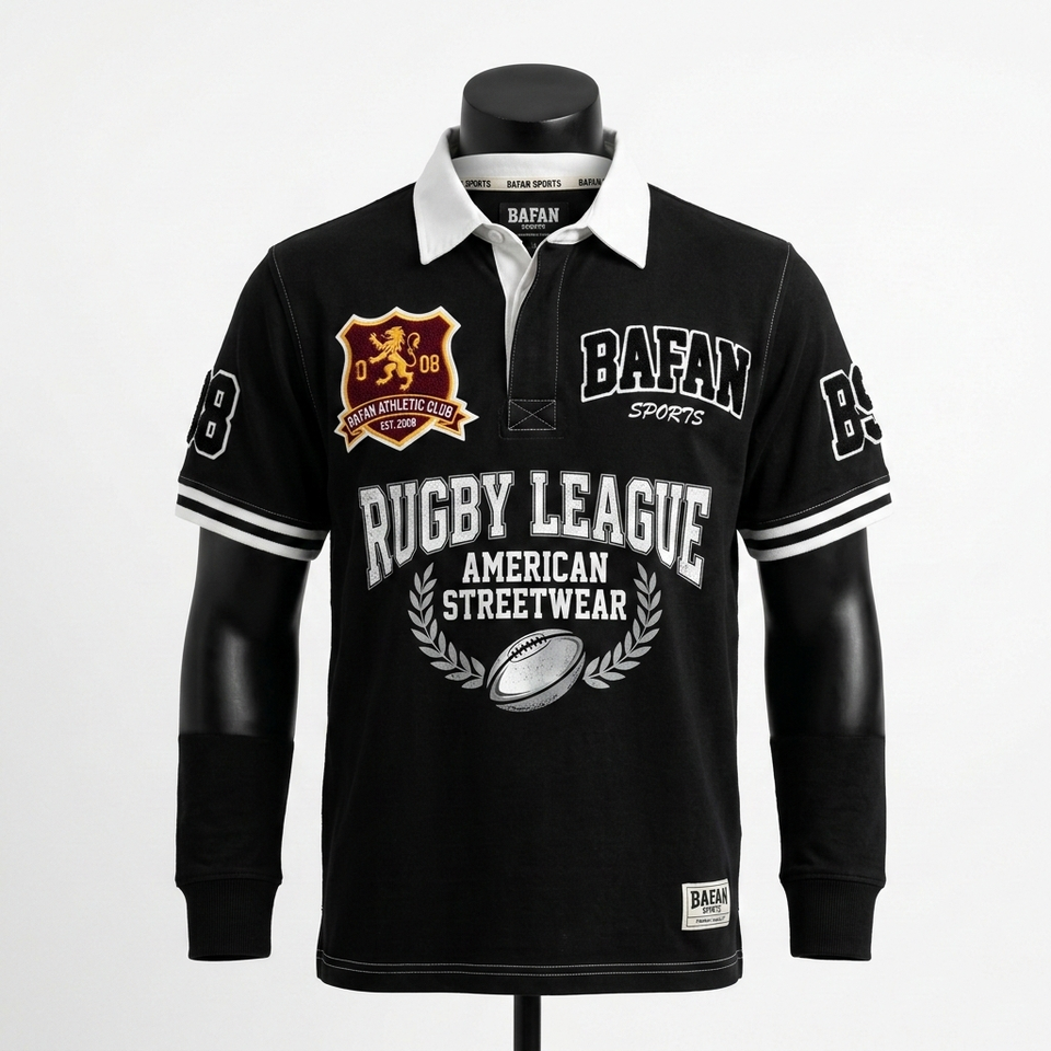 Camiseta de rugby de manga larga para hombre, 260 GSM, algodón y poliéster, jersey de rugby con logotipo bordado con rayas negras, camisetas de rugby para hombre