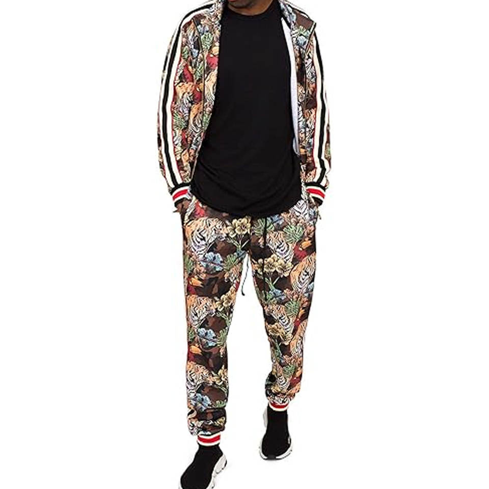 Conjunto Deportivo para Hombre para Correr y Entrenar, Chaqueta Transpirable con Cremallera y Pantalones Deportivos Ajustables con Rayas en G, Camuflaje de Tigre de la Selva