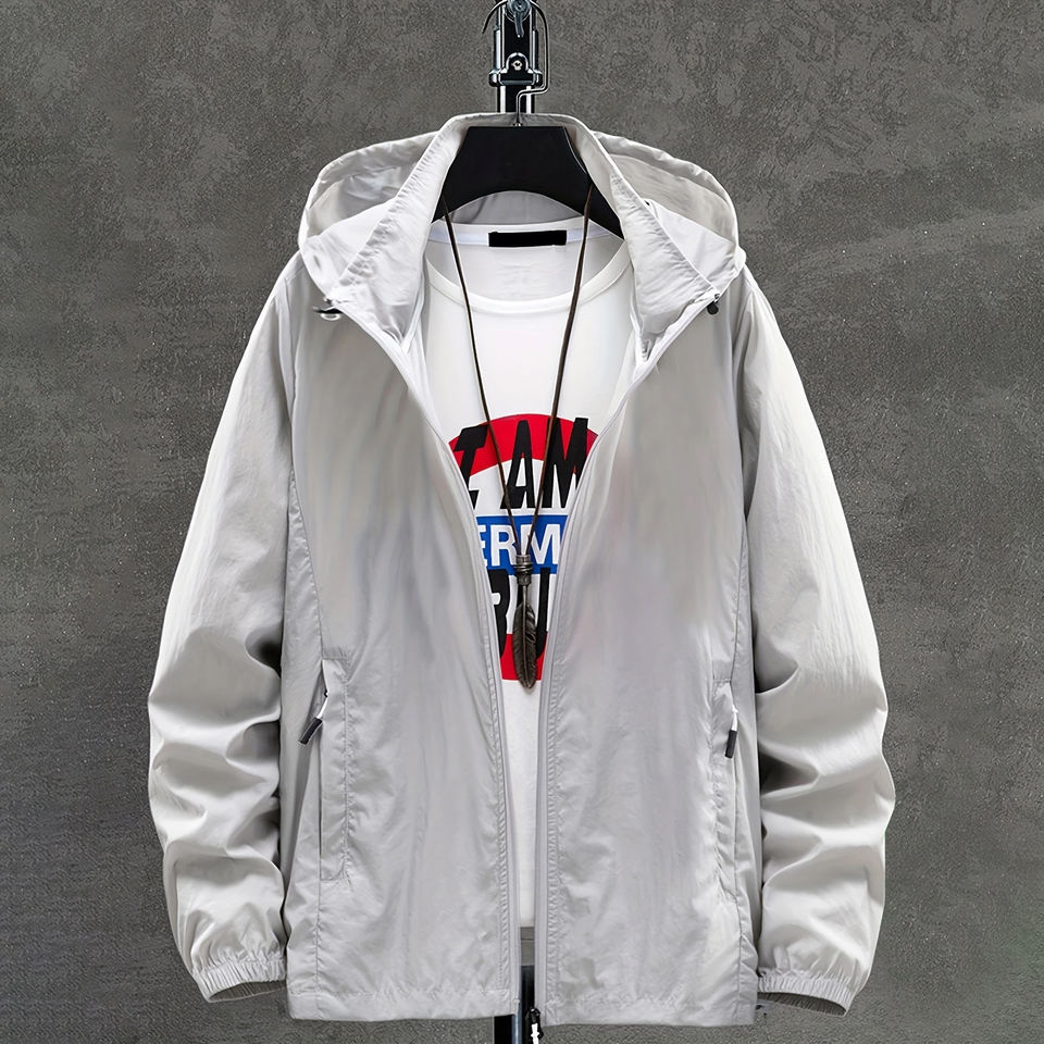 Chaqueta de protección solar con bolsillo y cremallera para hombre, abrigo deportivo de invierno a prueba de viento para correr al aire libre, vacaciones en la playa