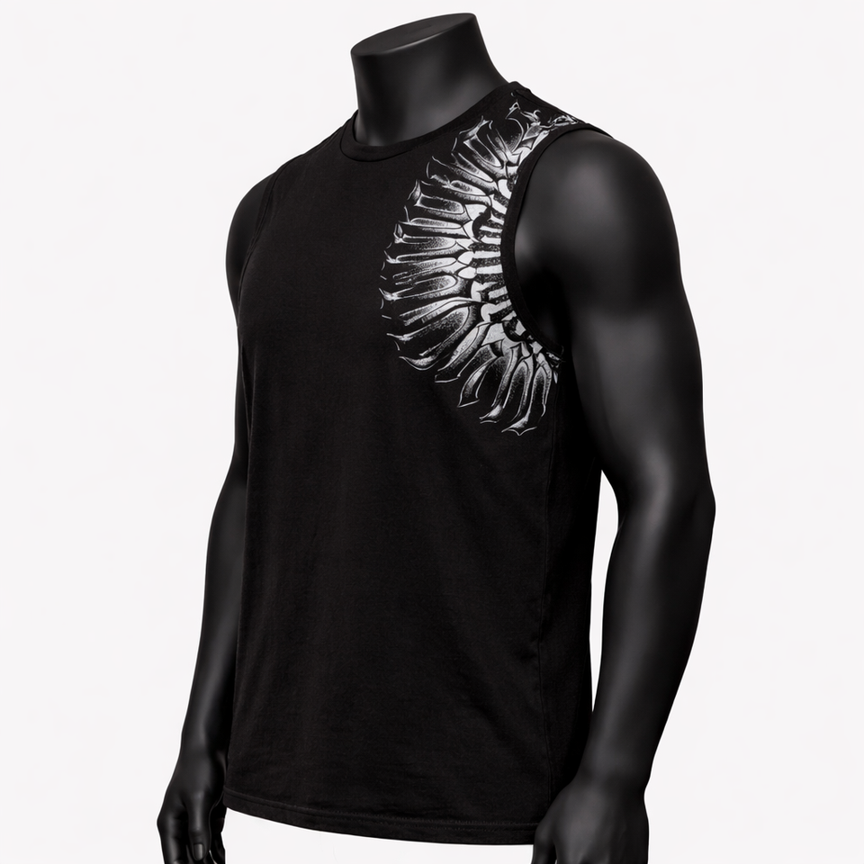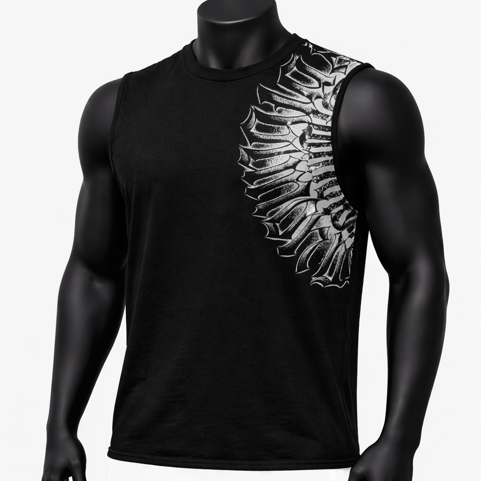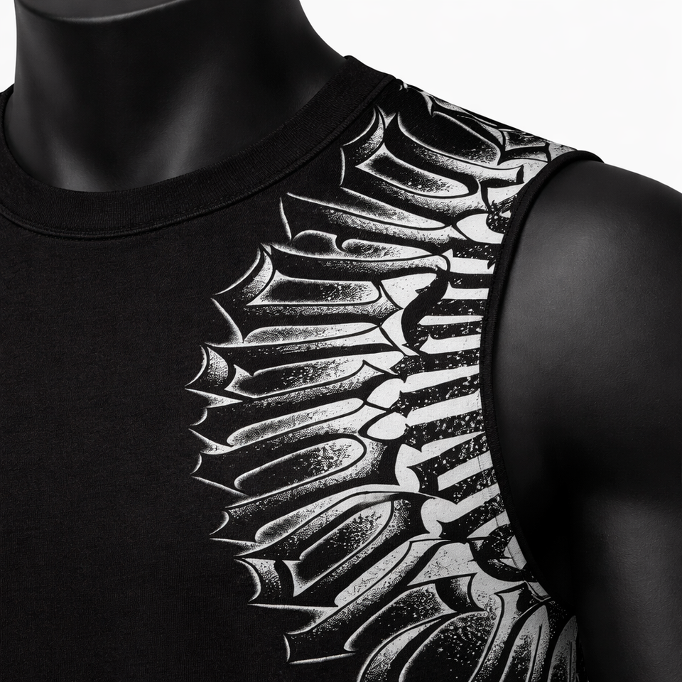 Camiseta sin mangas para hombre con estampado asimétrico de esqueleto y diseño de huesos, estilo streetwear, camiseta muscular gótica para fitness y gimnasio, chaleco de algodón personalizado.