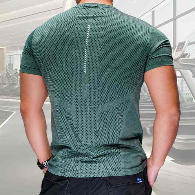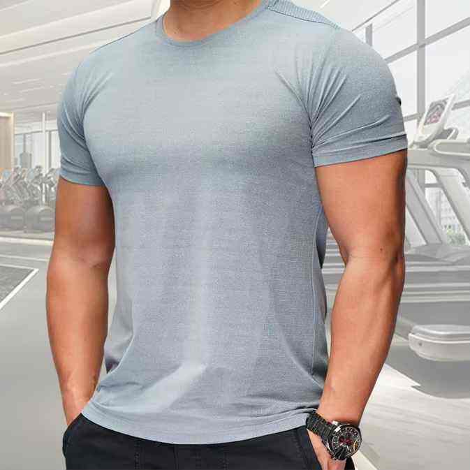 Camiseta Deportiva de Compresión para Hombre, Corte Ajustado, Cuello Redondo, Manga Corta, Transpirable, Spandex/Poliéster, Estilo Urbano, 220 Gramos, Color Sólido