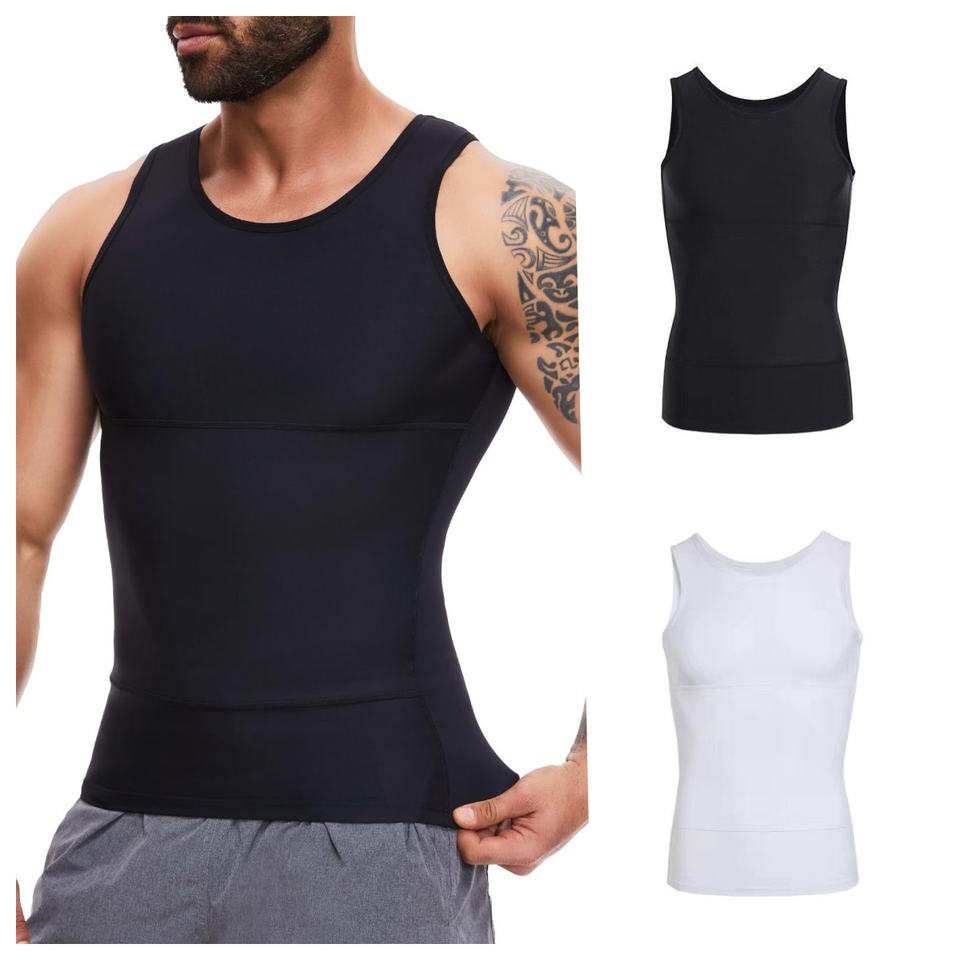 Camisa de Compresión Adelgazante para Hombre, Chaleco de Manga Corta de Nailon con Control de Barriga, Soporte para Abdomen EN EL Pecho y Uso Diario