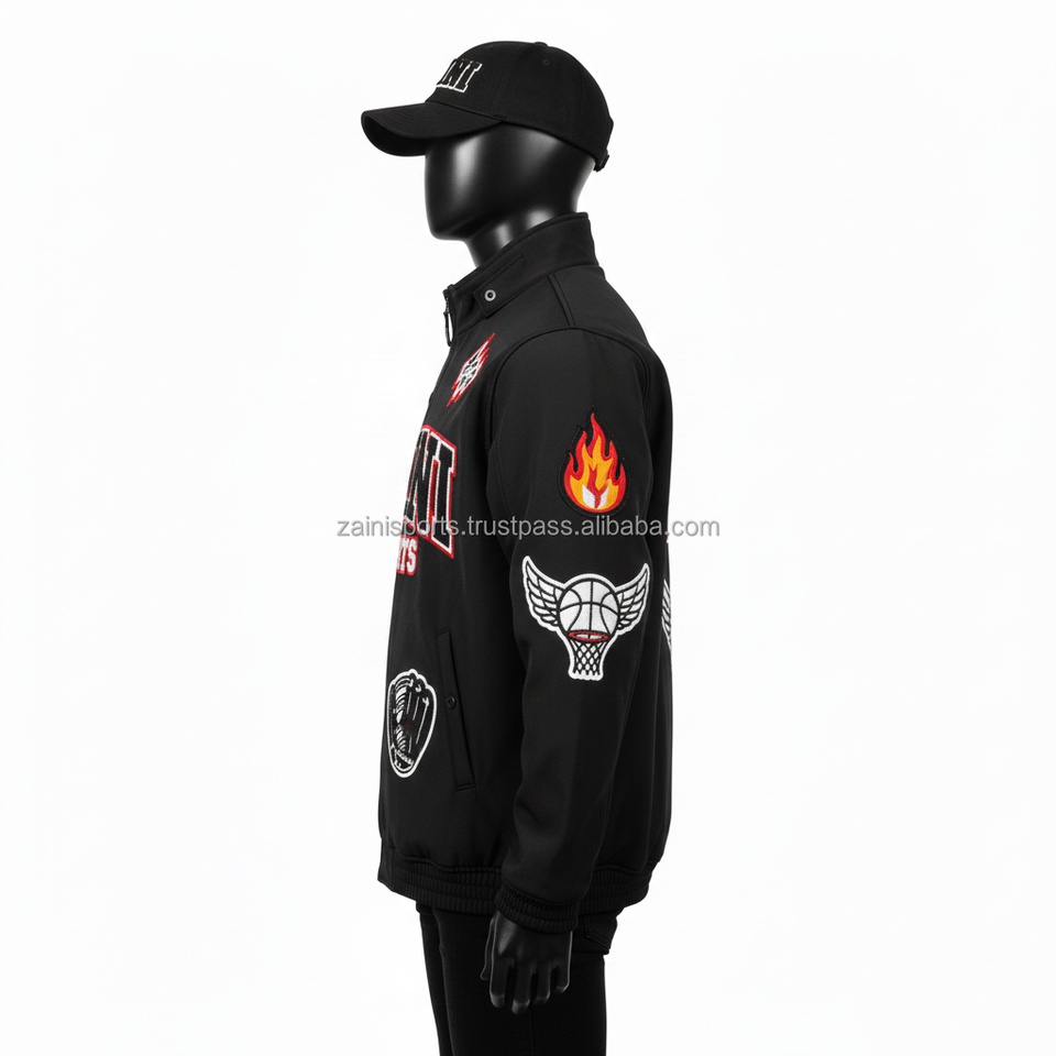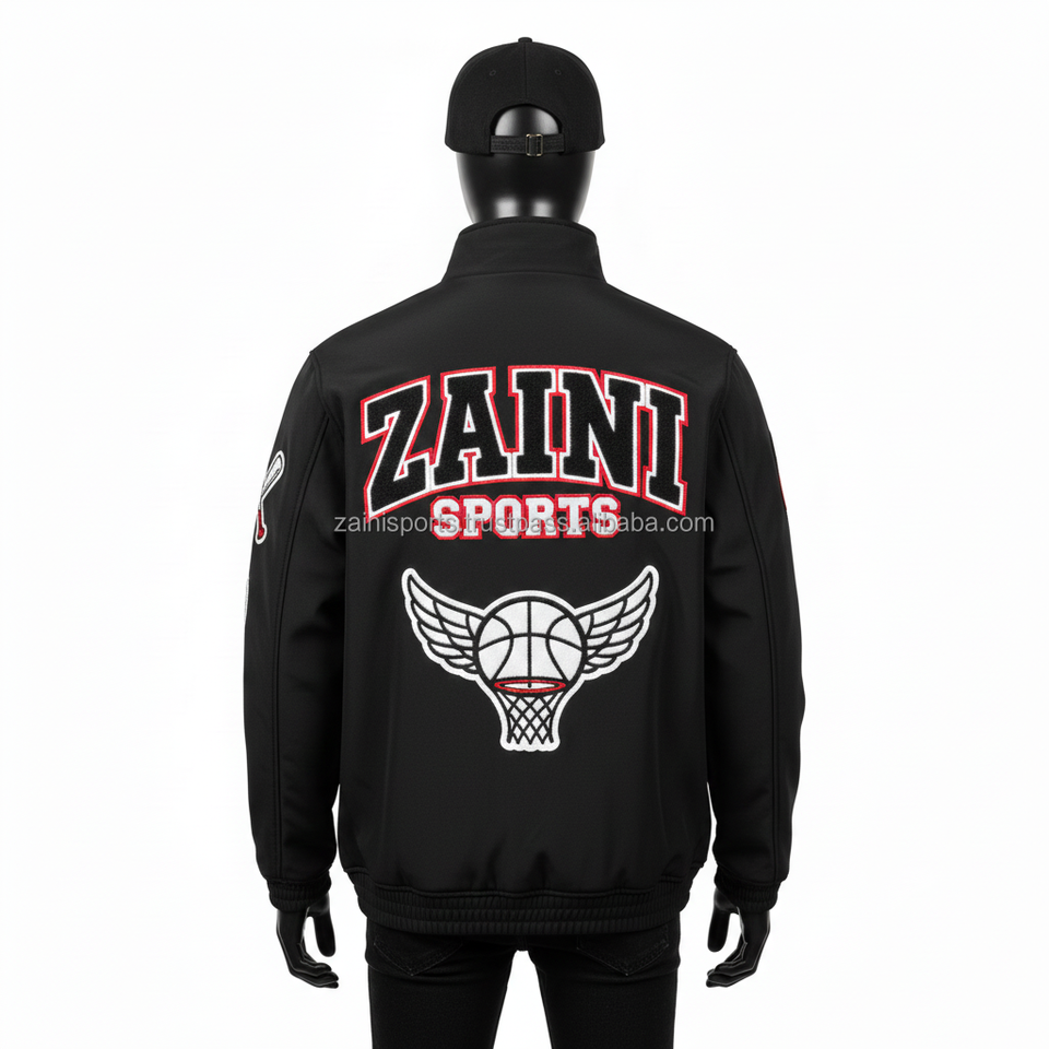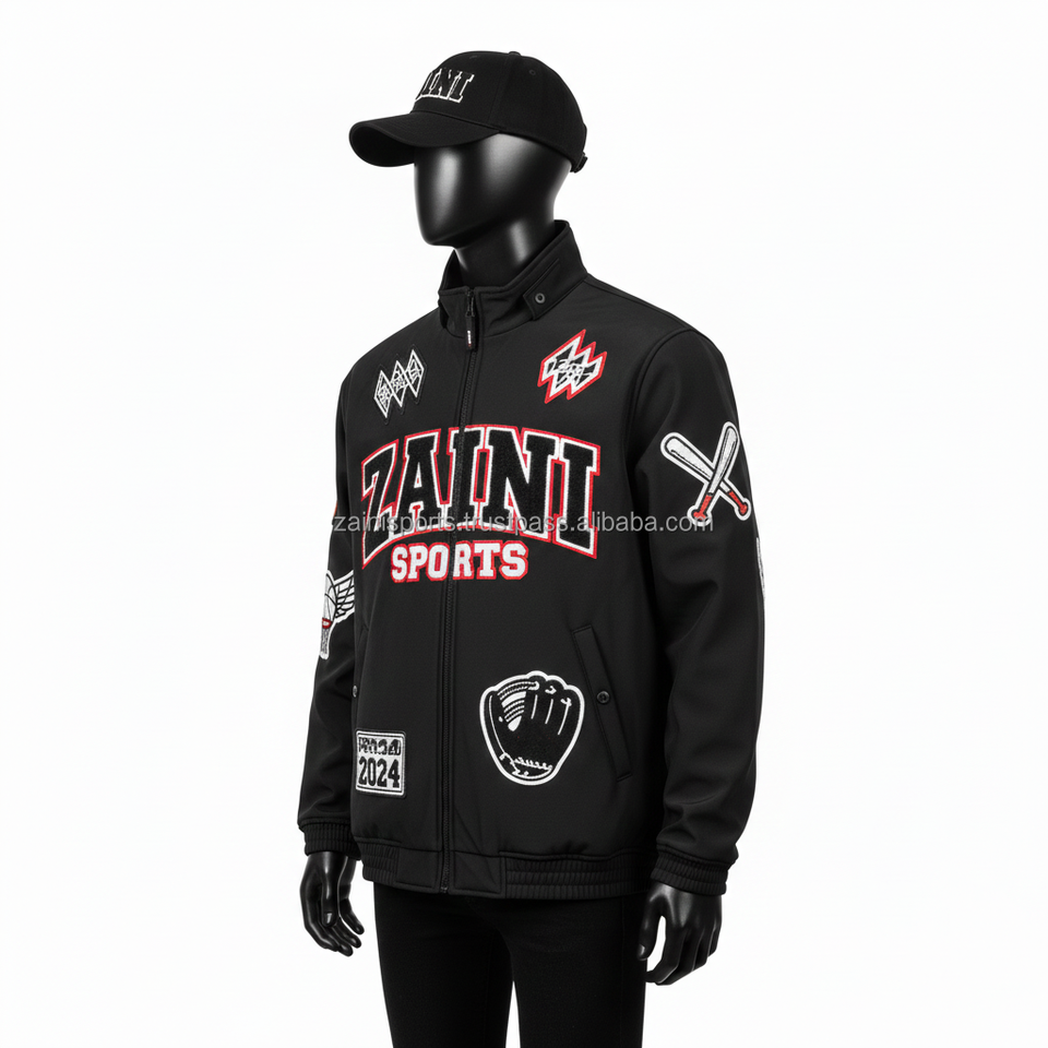 Chaqueta Softshell para Hombre, Tejido Softshell de Poliéster, Color Negro, Parche Bordado con Transferencia de Calor, Logotipo Personalizado