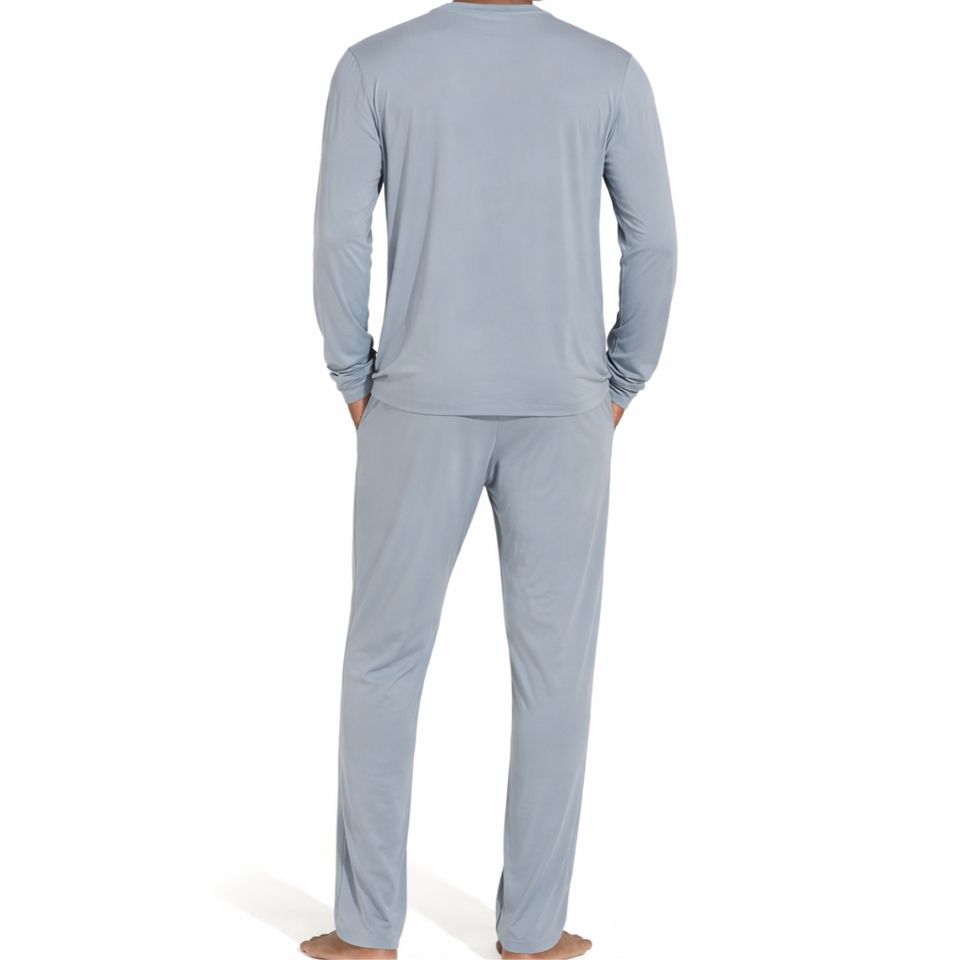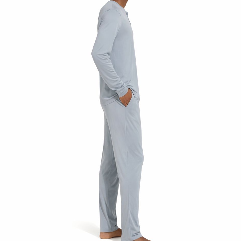 Conjunto de pijama de color liso para hombre, ropa de dormir cómoda de manga larga, traje de descanso, conjunto de dormir transpirable de ajuste cómodo