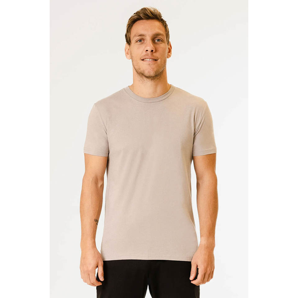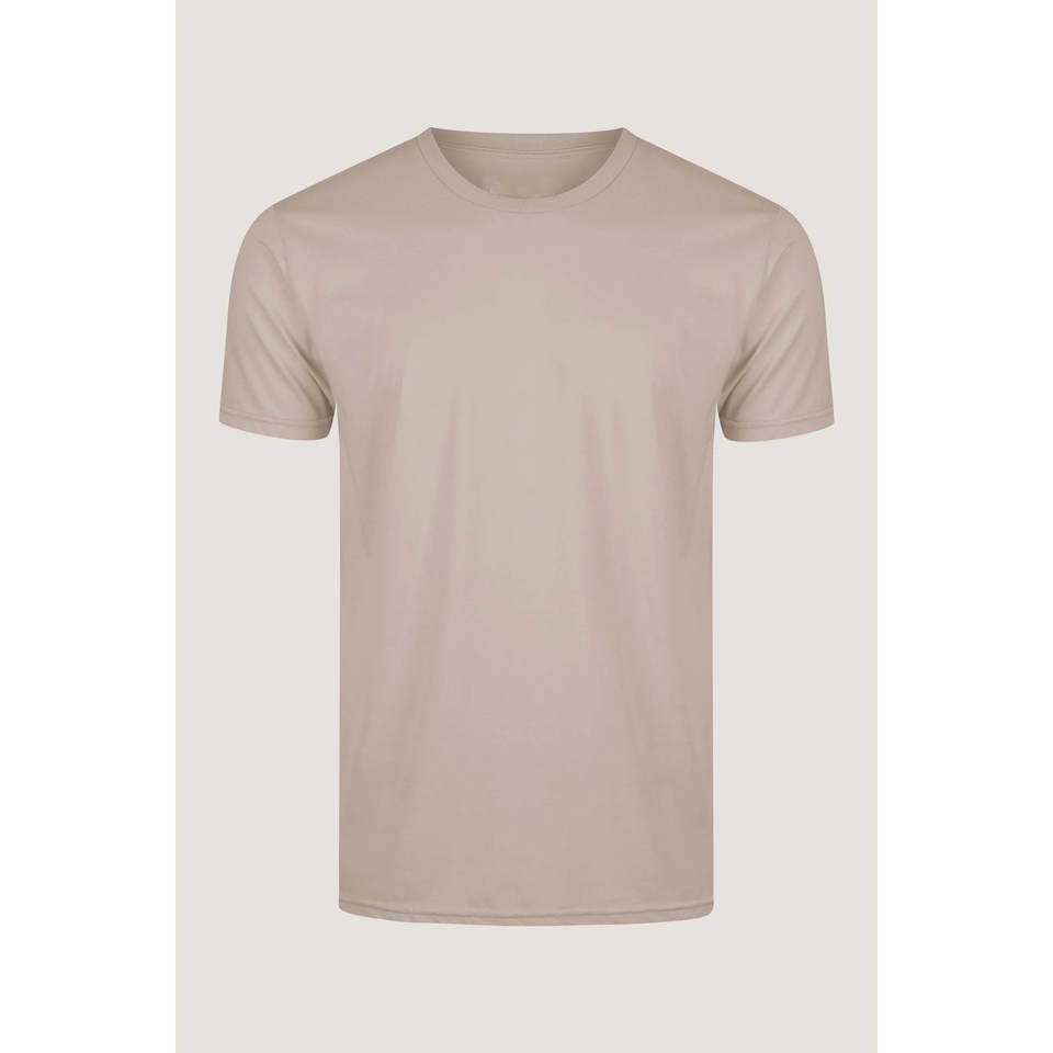 Men Solid Round Neck Cotton Blend Beige T-Shirt Crew Neck Short Sleeve Men's T-shirt