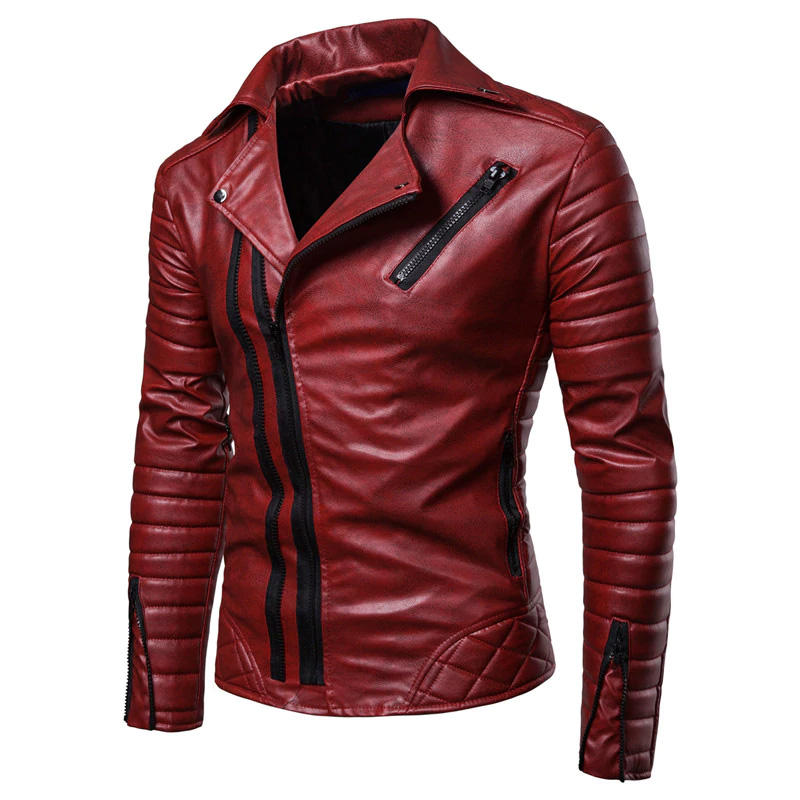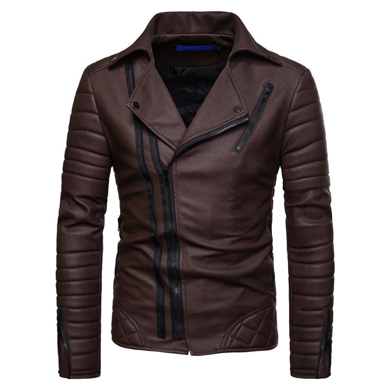 Chaqueta de cuero sintético para hombre, estilo motociclista, impermeable, cortavientos, con cremallera, a la moda, para negocios, formal, con cierre frontal
