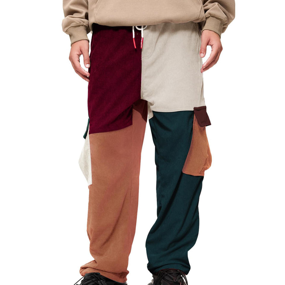 Hombres Primavera Venta al por mayor Monos para hombres Cinta Loose Binding Cargo Pantalones largos Pantalones Bolsillos Correa Casual Hombres Pantalones