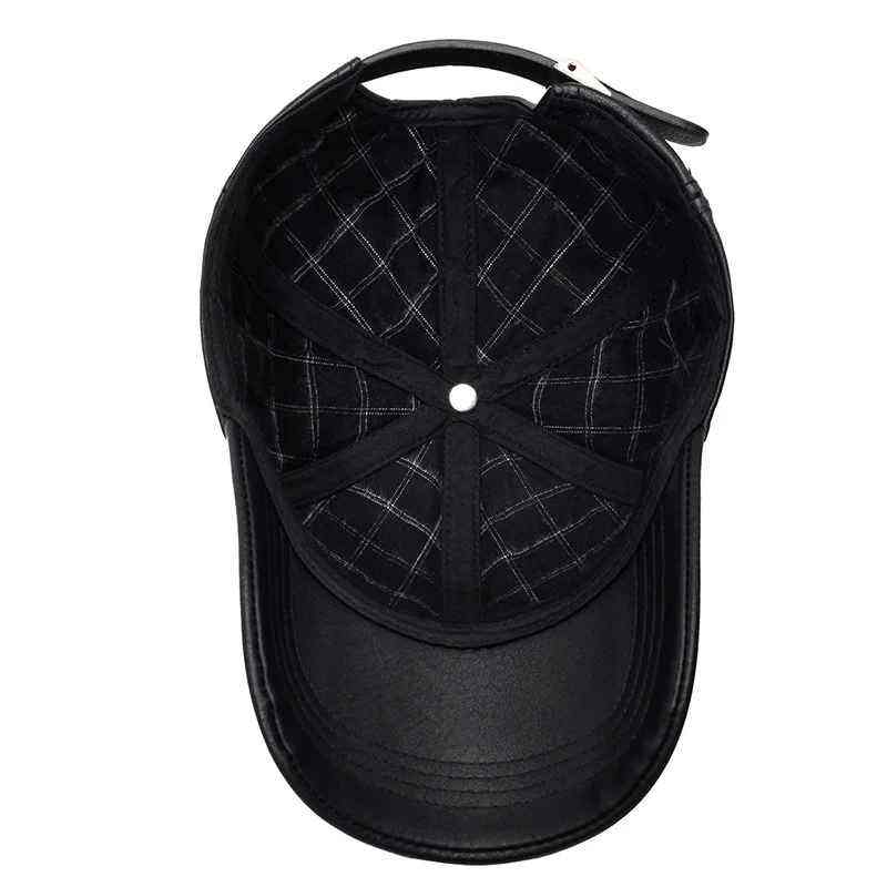 Hombres Primavera Invierno Cuero Genuino Negro Marrón Gorras de béisbol planas Hombre 54-62 cm Tamaño personalizado Snapback Golf Hat