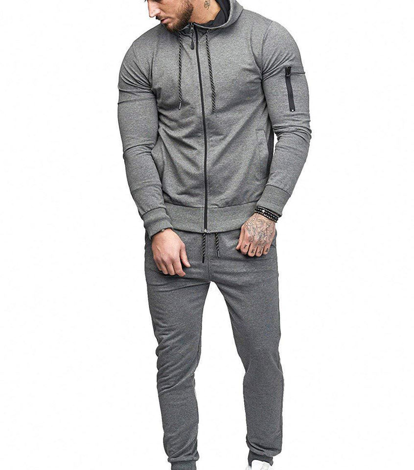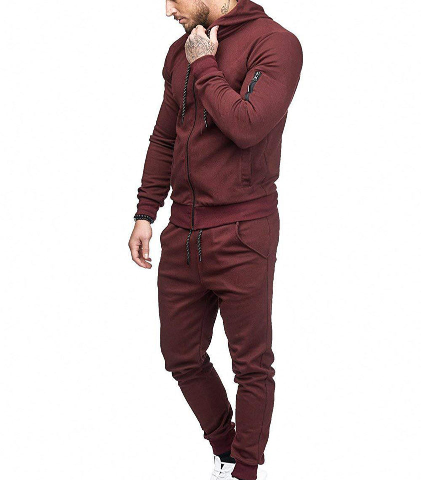 Conjunto Deportivo para Hombre, Color Sólido, 2 Piezas, Traje para Correr, Sudadera con Capucha, Pantalones Deportivos, Conjunto de Manga Larga