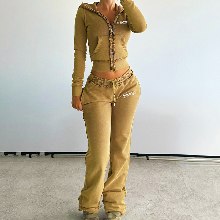 Conjunto de Sudadera y Pantalones Deportivos para Hombre, Dos Piezas, Bordado Desgastado, 100% Algodón, Lavado Ácido, Personalizable, Otoño