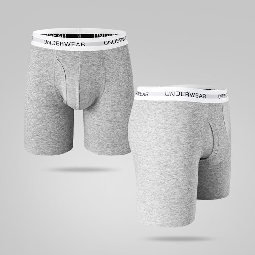 Calzoncillos de hombre sólidos de pierna larga, calzoncillos masculinos alrededor del logotipo de Jacquard, ropa interior de bóxer de algodón cómoda transpirable para hombre con venta al por mayor