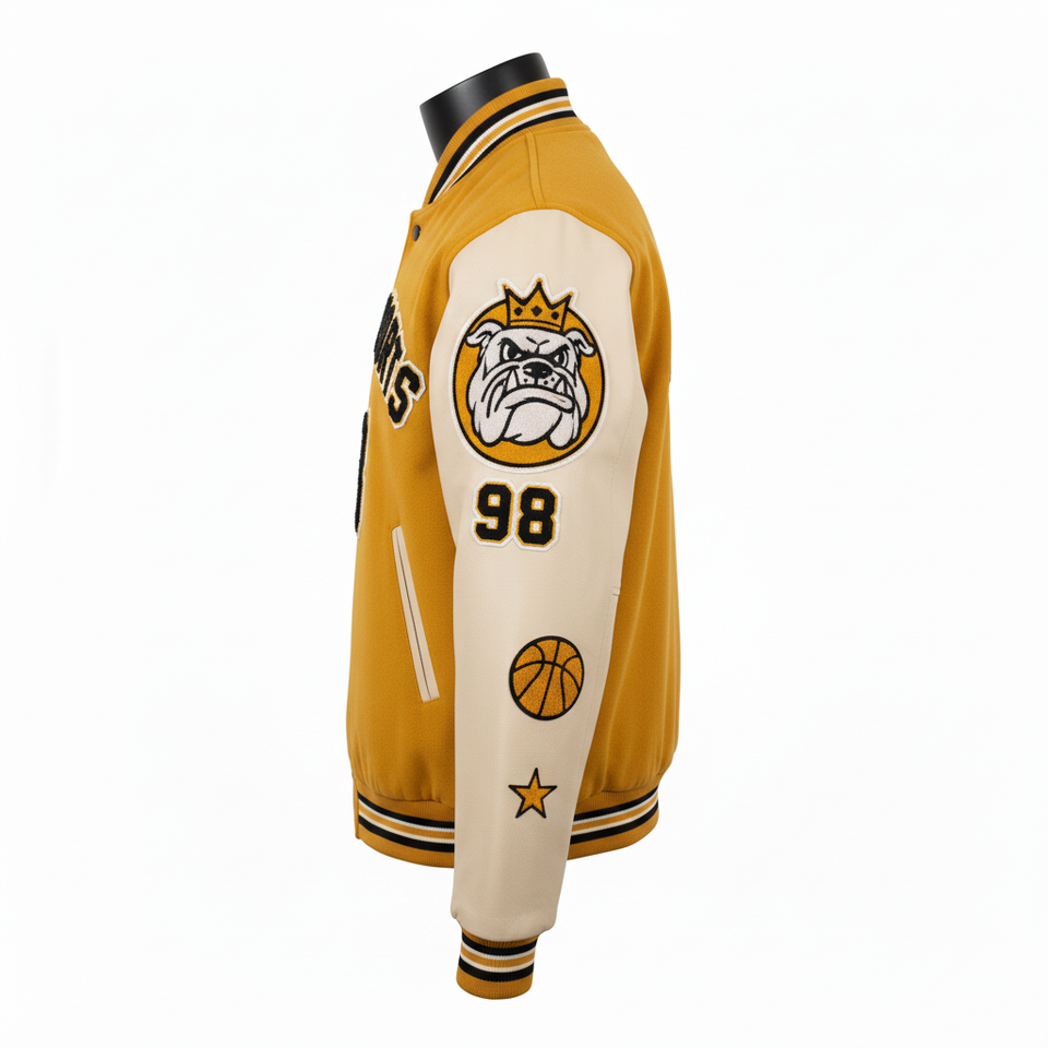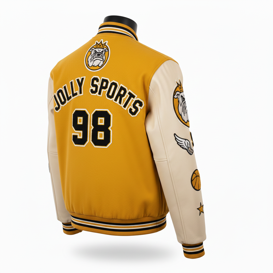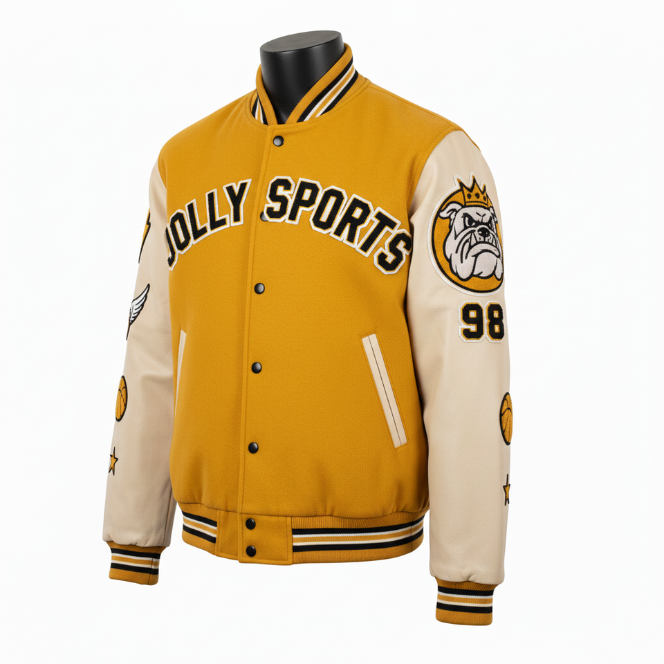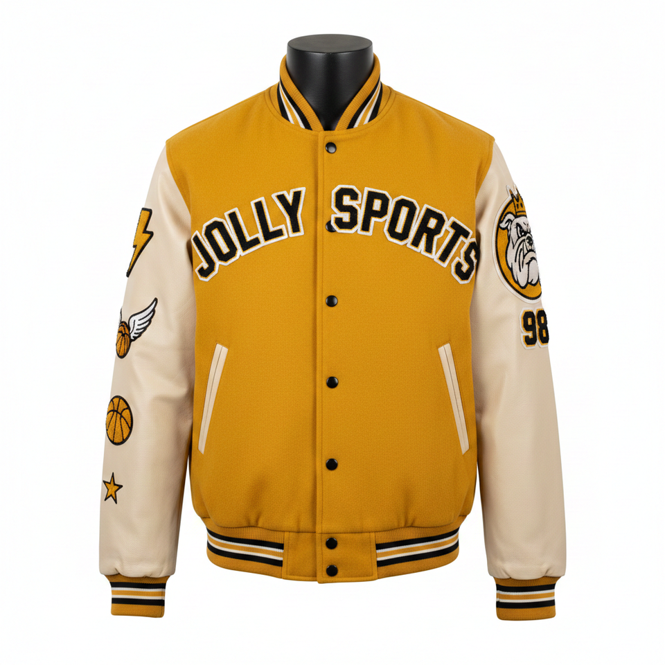 Chaqueta Universitaria para Hombre, Mezcla de Lana de Alta Densidad, Mangas de Cuero PU, Estilo de Panel en Contraste, Logotipo Personalizado, Chaquetas Universitarias para Hombre