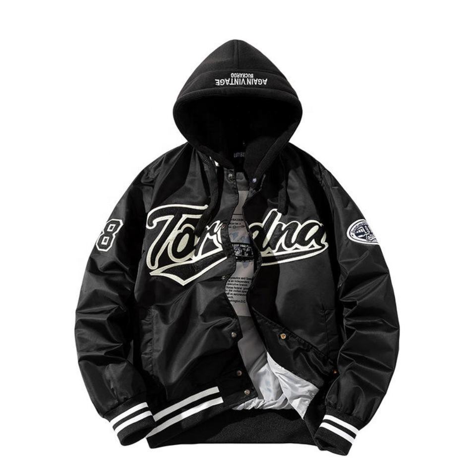 Chaqueta Bomber de mangas de LogoLong para hombre, chaqueta de béisbol con capucha extraíble, OEM, personalizada, Unisex