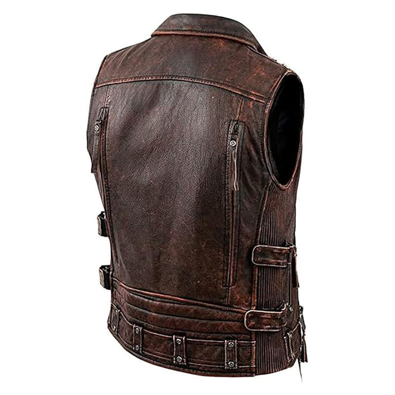 2025 nuevo estilo de hombre Vintage cuero de vaca marrón Biker Chaleco de alta calidad hecho a medida sin mangas motocicleta cuero ropa exterior invierno