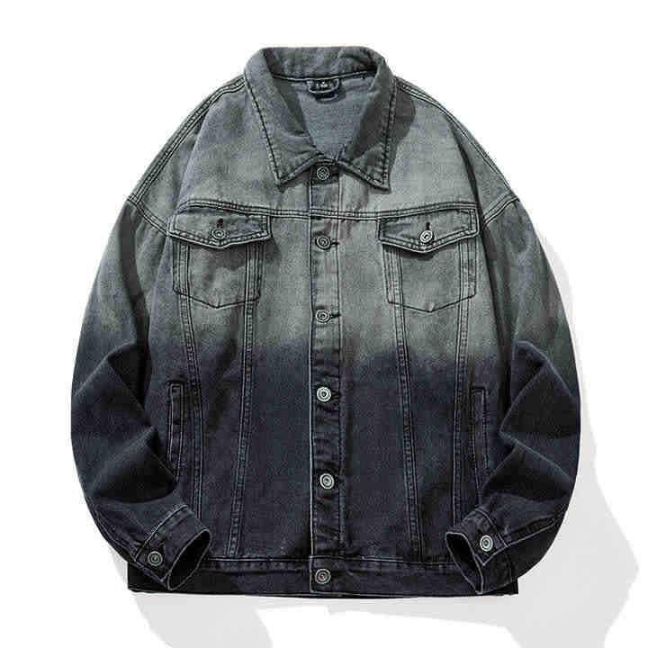 Chaqueta vaquera lavada para hombre, abrigo vaquero con degradado de corte holgado, ropa de calle informal, prendas de vestir exteriores para hombres y mujeres, estilo Vintage a la moda