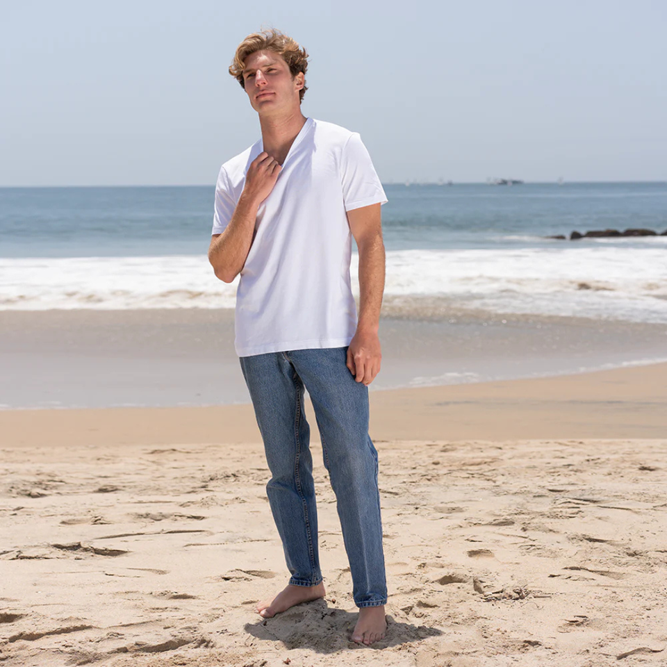Camiseta Blanca de Cuello Redondo para Hombre, 100% Algodón Orgánico de Lujo, Preencogido, Certificado GOTS, Premium, Duradera, Corte Clásico