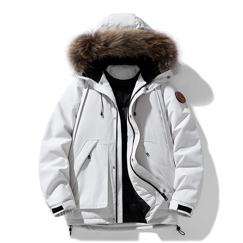 Chaqueta de Plumón de Pato para Hombre, Gruesa, con Capucha y Cuello de Piel Desmontable, Estilo Cargo