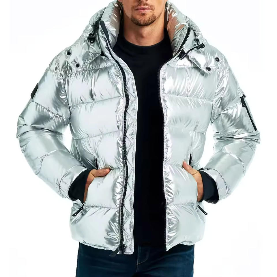 Chaqueta de invierno para hombre con estilo combinado con un moderno look de chaqueta acolchada para la moda urbana de todas las temporadas.
