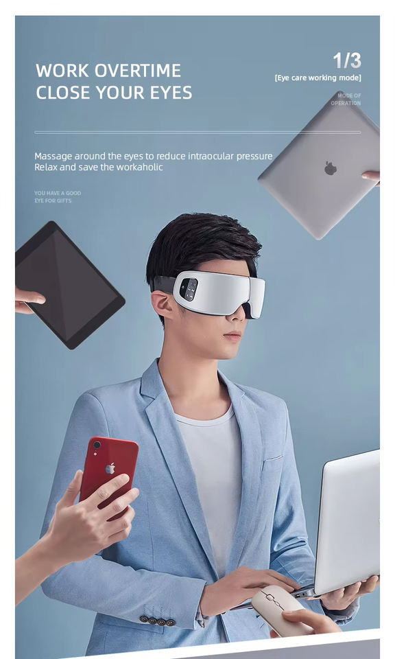 Masajeador de Ojos Inalámbrico Inteligente con Bluetooth para Hombres, Masajeador de Templos para Ojos Cansados, para Dolores de Cabeza, Antifaz para Dormir