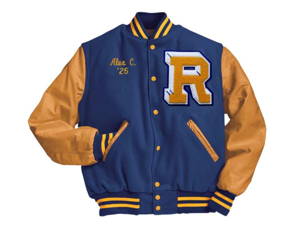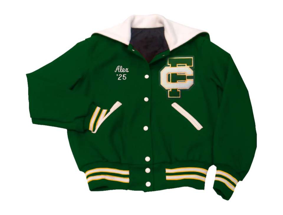 Chaqueta Varsity de Lana para Hombre, Cuello Alto, Bordado, Mangas de Cuero, Largo Regular, Estilo Deportivo