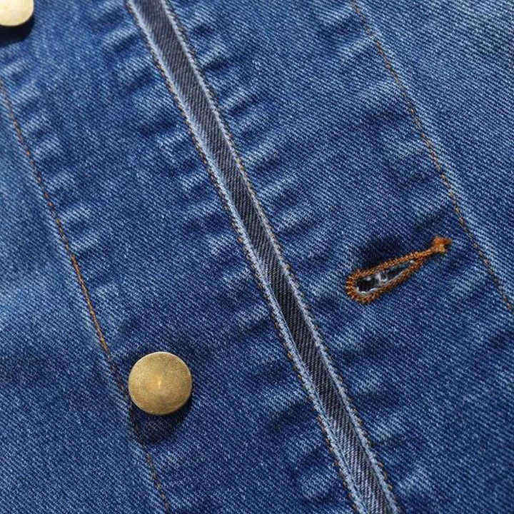 Chaqueta vaquera de talla grande con bolsillo y solapa para rascar gato para hombre, sin Sudadera con capucha, ropa vaquera para hombre, chaquetas de algodón 100% para hombre