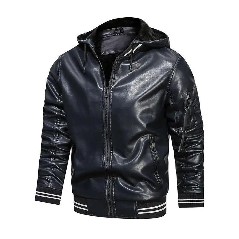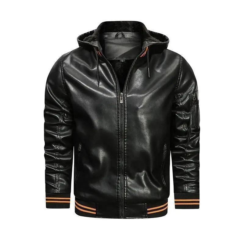 Chaqueta de trabajo de invierno para hombre de cuero con capucha primavera otoño a prueba de viento nueva chaqueta impermeable gruesa para montar en motocicleta