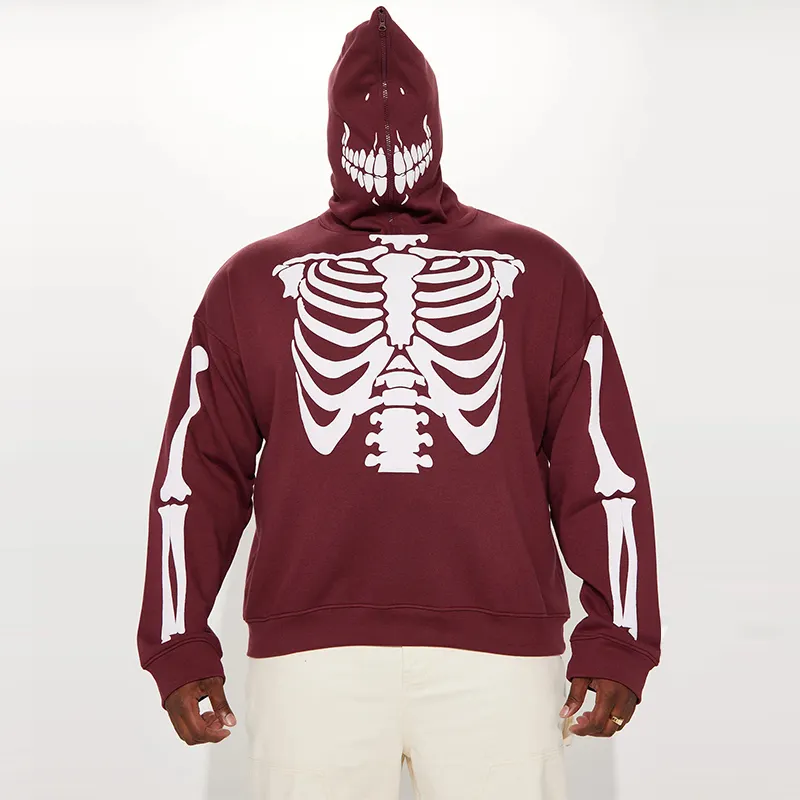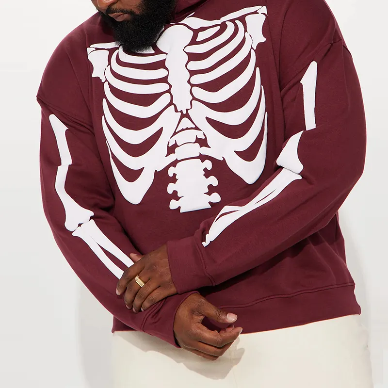 Sudadera con capucha de esqueleto con estampado de pantalla de alta calidad de gran tamaño personalizada de algodón 100% para hombre
