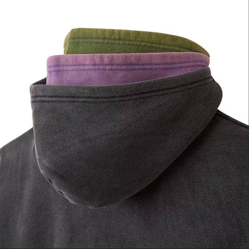Conjunto Deportivo de Hombre 100% Algodón con Pedrería, Sudadera con Capucha Extra Grande, Pantalones Deportivos Cortos con Lavado Ácido, Cierre de Cremallera, Estilo Vintage Desgastado