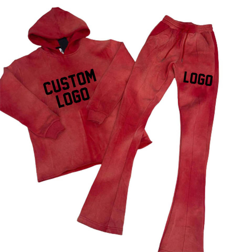 Conjunto de dos piezas de algodón 100% para hombre, pantalones de chándal acampanados personalizados de alta calidad, Sudadera con capucha, chándal con patrón sólido, estampado de soplo para invierno