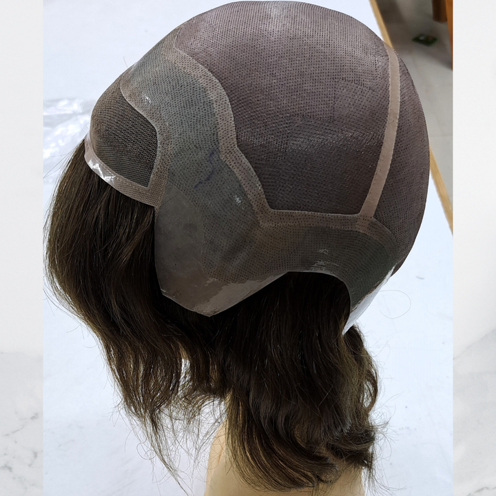 Pelucas de Cabello Indio 100% Remy para Hombre, con Frente de Encaje Francés, Línea de Cabello Natural, Base Mono Fina, Sistema de Reemplazo de Tupé, Encaje Negro Decolorado