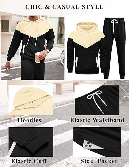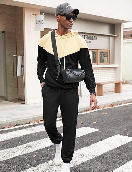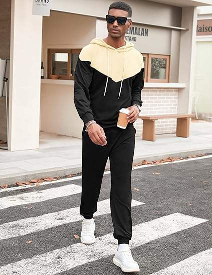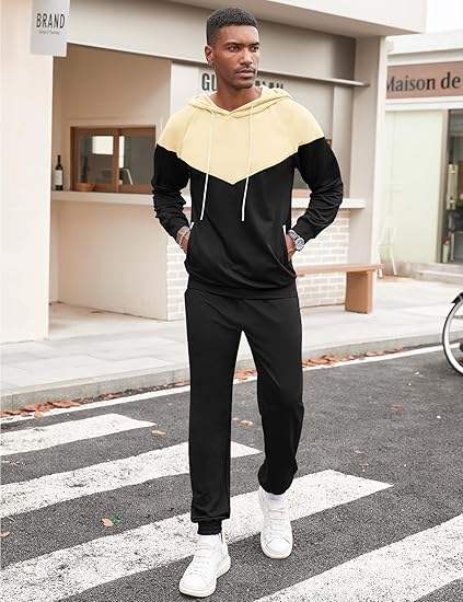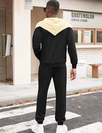Conjuntos de 2 piezas para hombre, sudadera con capucha de colores en bloques, pantalones deportivos, conjunto informal deportivo para hombre