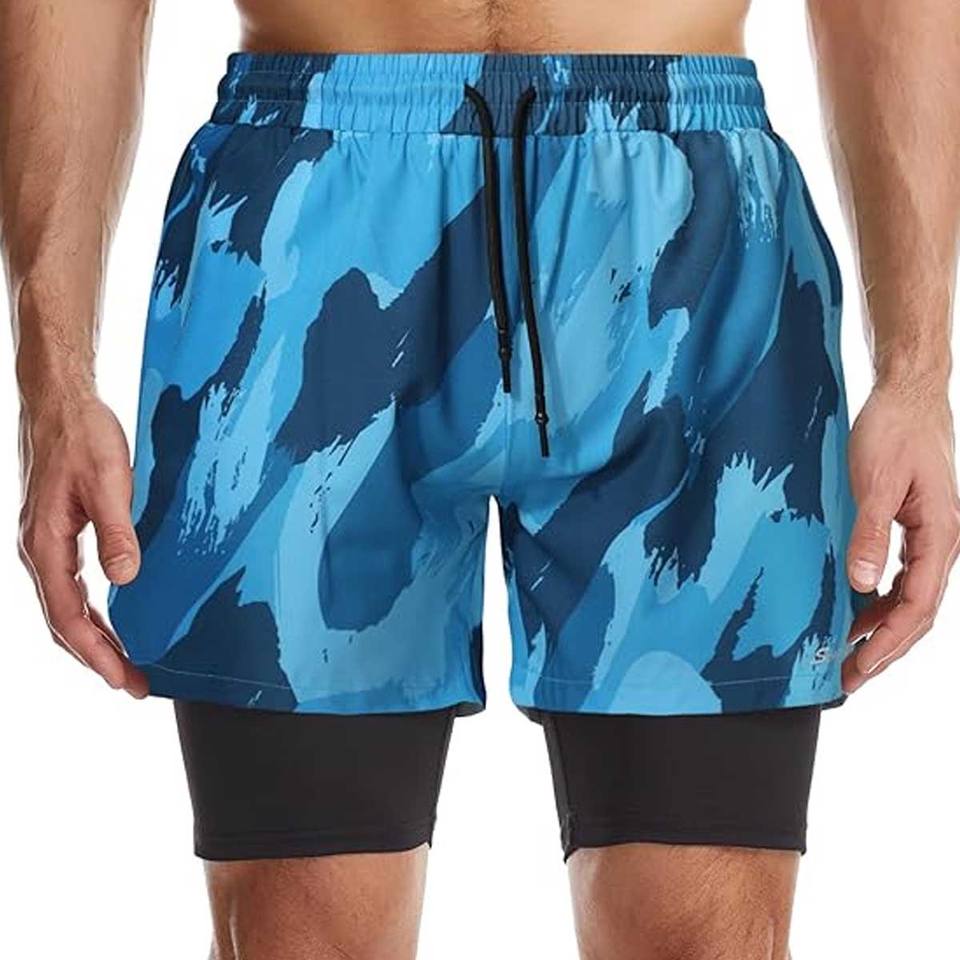 Pantalones cortos para correr 2 en 1 para hombre con bolsillos con cremallera Pantalones cortos de entrenamiento de gimnasio atlético de secado rápido con Forro corto