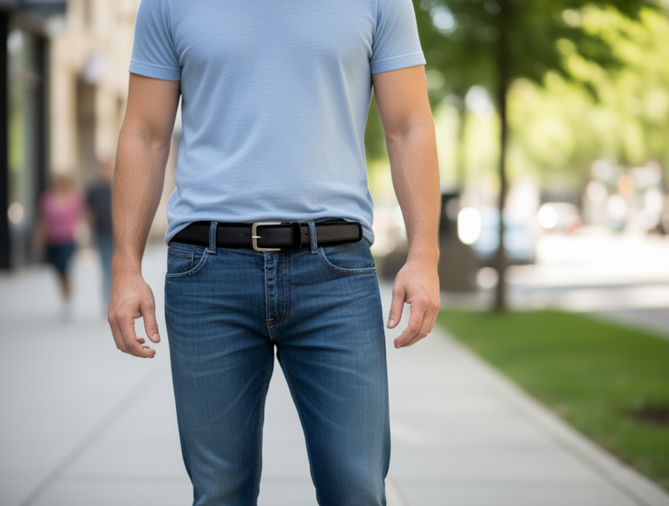 Cinturón de Hombre con Hebilla Metálica de 4.0cm, Borde de Terciopelo, Estilo Casual