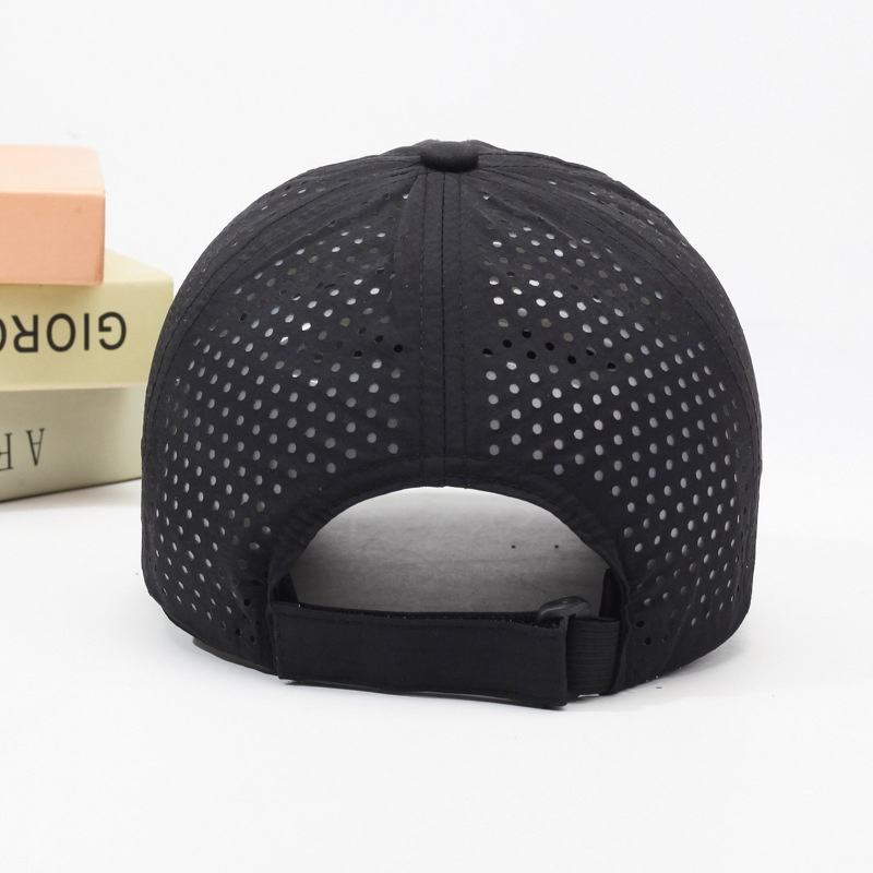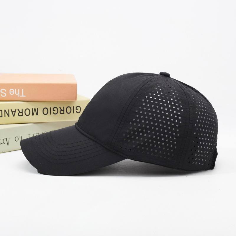 Gorra de béisbol de rendimiento de 6 paneles para hombre con logotipo personalizado de secado rápido perforado 100% poliéster