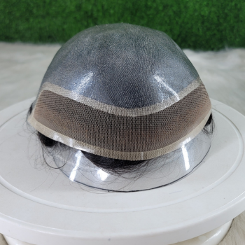 Modelo de tupé Bio-Lace de 6 \ "para hombre con piel frontal de encaje PU espalda 8x10 \" Base 100-130% densidad virgen Remy cabello humano liso indio
