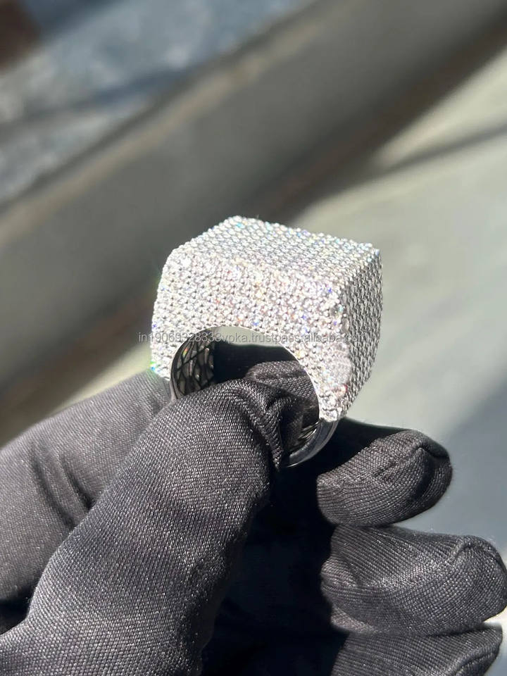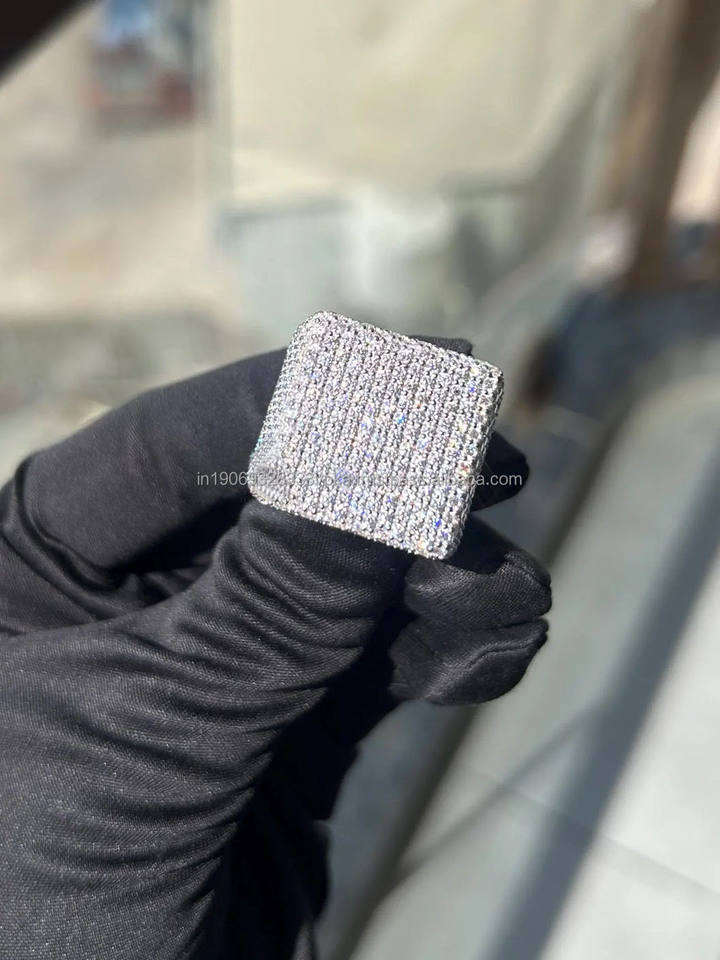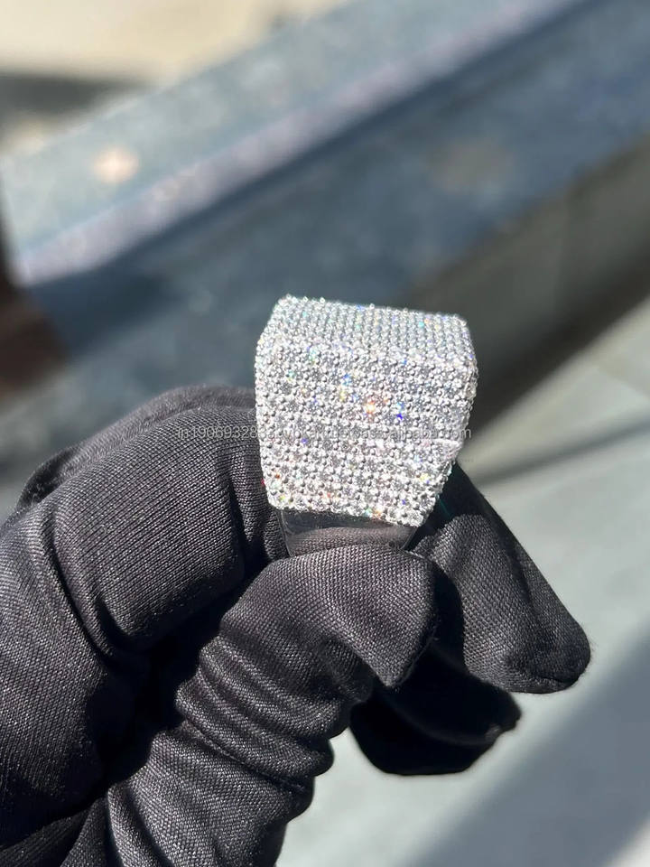 Anillo de Hombre de Plata 925 con Baño de Rodio, Estilo Hip Hop, con Incrustaciones de Moissanita y Diamantes Simulados, Anillo de Lujo para Boda, Anillo de Pinky