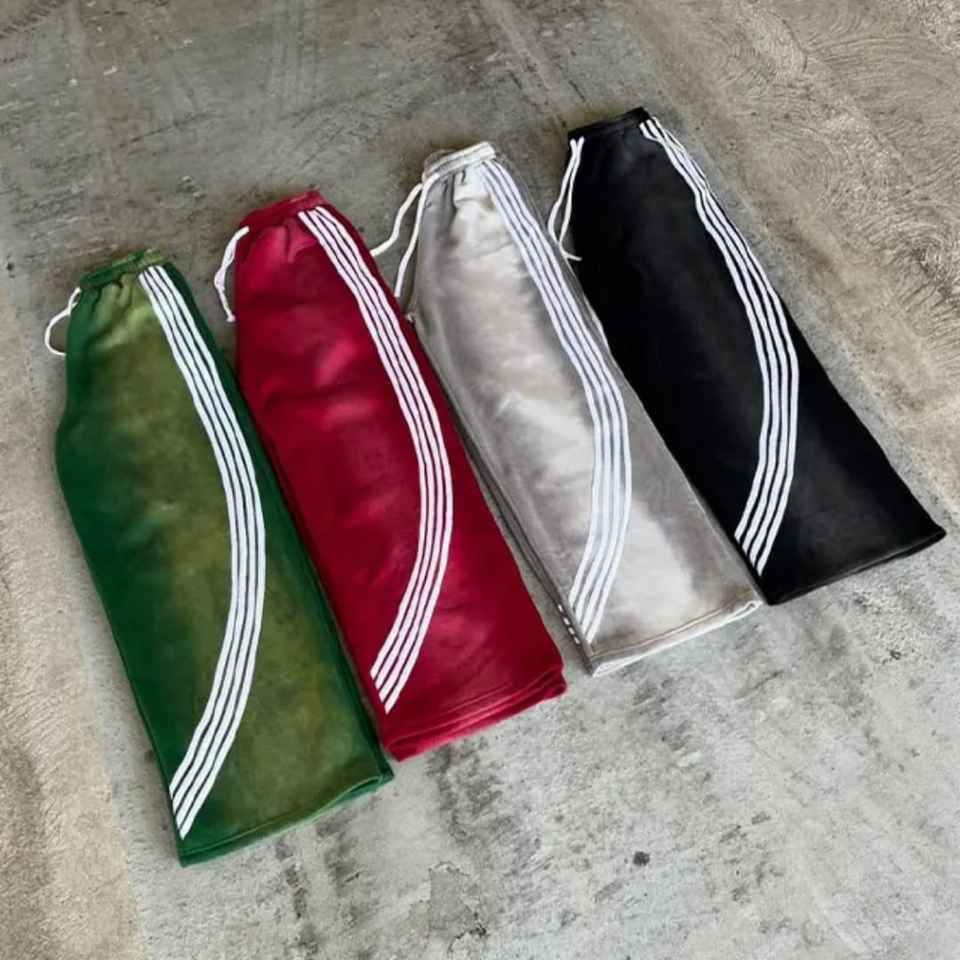 Pantalones Deportivos Casuales de Punto para Hombre, Lavado Ácido, Lavado Claro, Personalizados, de Poliéster/Algodón, Felpa Gruesa, Pierna Ancha, Ecológicos