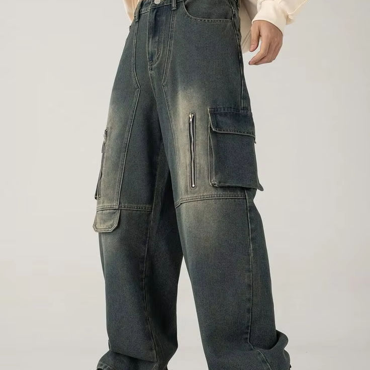 Pantalones vaqueros de algodón 100% lavados con ácido para hombre, transpirables y lavables con decoración de botones para las estaciones de primavera e Invierno