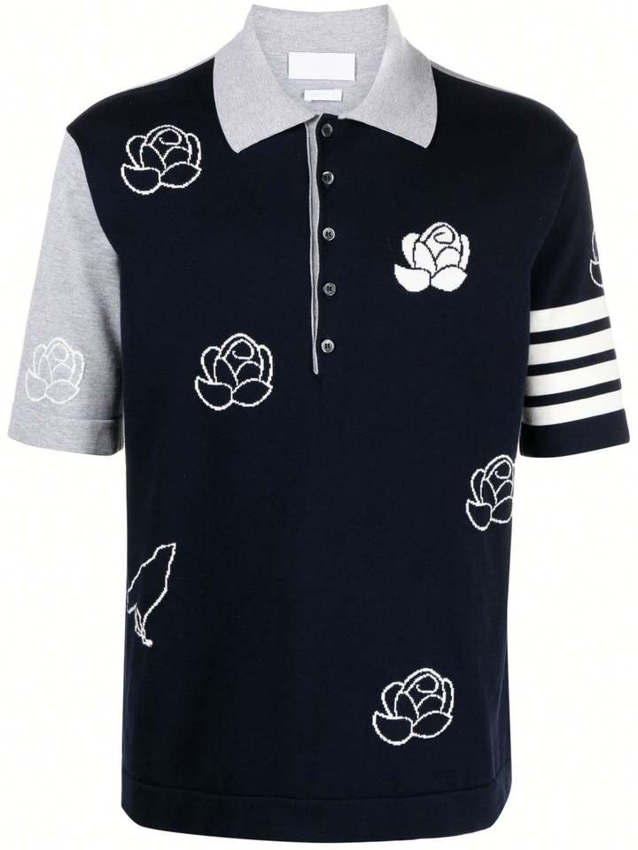 Polo de manga corta de estilo retro americano para hombre, chaqueta de béisbol con bloques de color, camiseta con solapa, suéter de moda estampado