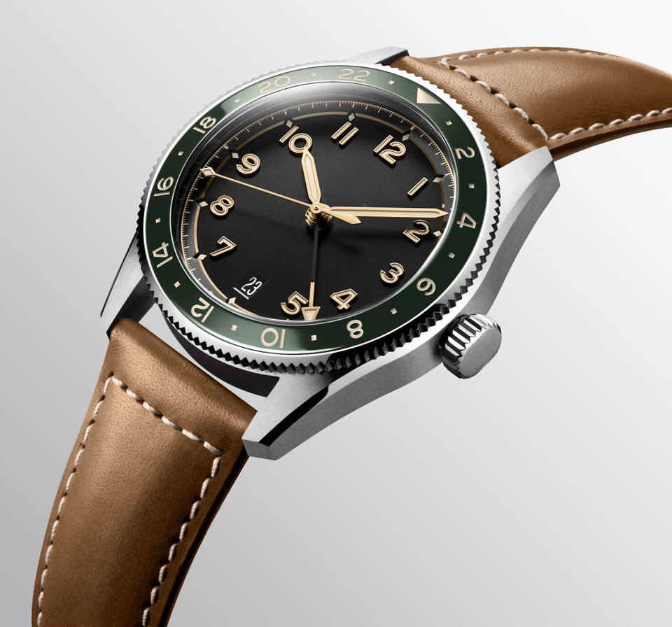 Reloj automático de doble hora para hombre con esfera luminosa giratoria, correa de cuero, ventana de fecha, reloj de pulsera deportivo informal Longinesing