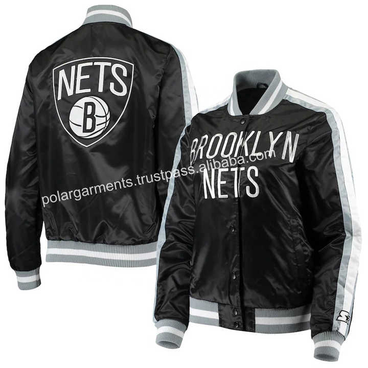Chaqueta de invierno de béisbol para hombre con logotipo personalizado Chaqueta de satén de Brooklyn con decoración bordada
