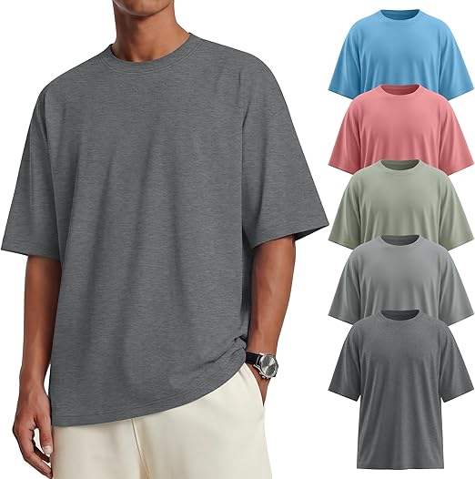 Camiseta Básica de Hombre con Hombros Caídos 2026, Ajuste Oversize, Dobladillo Curvo, Colores Personalizados, 100% Algodón Peinado de Alta Calidad con Letras