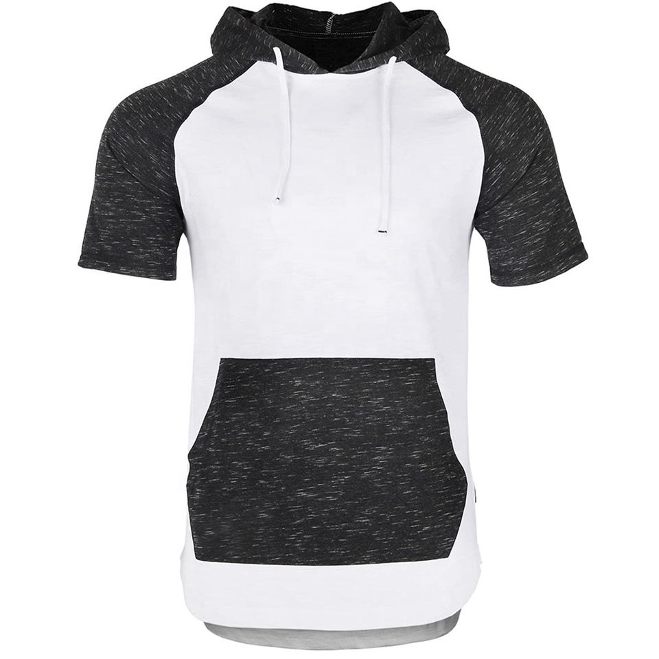 Top básico de manga corta para hombre, sudaderas con capucha de verano, jersey liso, camiseta con capucha, pantalones de chándal ajustados, patrón, ropa básica al por mayor