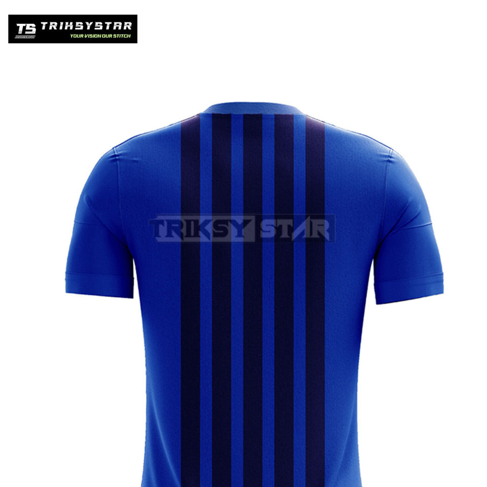Nombre del producto:Conjunto de uniforme de fútbol de rayas verticales azul marino y azul marino para hombre