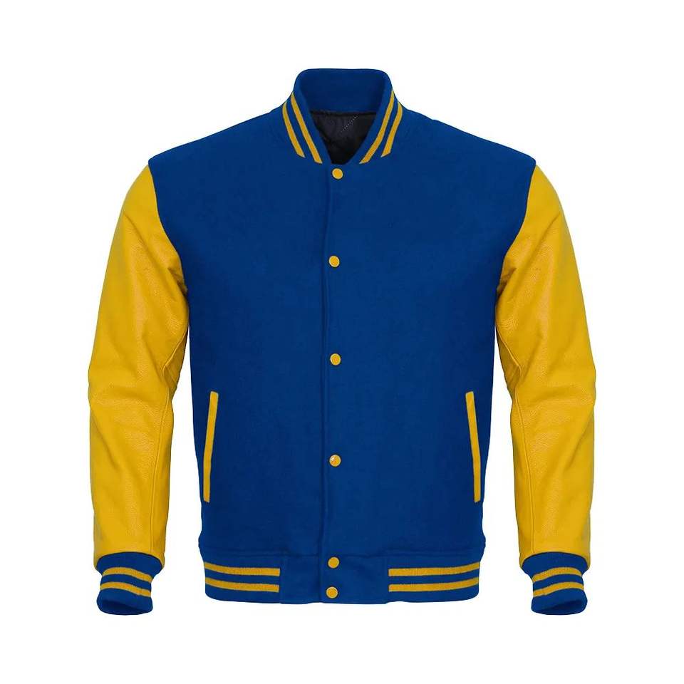 Chaqueta Varsity de Invierno para Hombre, Impermeable y Cortavientos, con Cuerpo de Lana y Mangas de Cuero Amarillo, con Botones, Parches Bordados Personalizados, Unisex